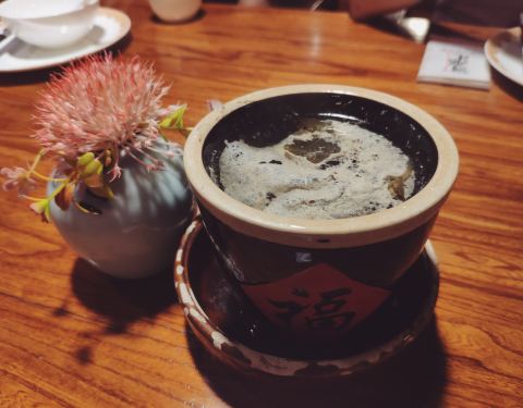 闽膳汇位于百捷上悦城对面金街,从上悦城顶部KTV招牌对过去就看到了。 店铺环境挺好的,闽南风格随处可见,环境也足够幽静。 |金线莲炖土猪肉^一人一小盅,汤底甘甜清爽,很棒。 |紫菜海蛎煲^海蛎份量很足,紫菜煲内还有猪肉丁等。但感觉没有混合一体,可以再加工下。 |鲍汁豆腐^用日本豆腐制作,表皮韧而内部滑嫩,入味,味道不错。 |酸汤龙胆鱼^龙胆鱼无刺,入口满满胶质,鱼肉足够新鲜。汤汁酸爽,莴笋入味好吃。但一直认为深海鱼不适合淡水鱼做法,吃起来不够爽滑过瘾。 |降压西芹爽^黑马菜品。西芹削薄片,淋上酱汁。吃起来,芹菜味道很淡,入口脆脆爽爽的。让我不爱吃芹菜的都吃了不少。 |闽膳汇帅鸽^鸽子小小的,品尝下味道。鸽肉火候恰到好处,很下饭。 总体来说,味道挺好,但仍有提升空间。环境很好,服务也热情。
