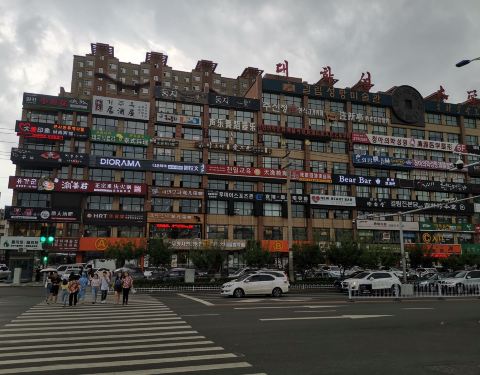 位置就在延边大学对过儿的服务大楼,入口在面向服务大楼冷面的右手边,左边是出口,超市的招牌被淹没了,但是红色的出入口标志还是醒目得很呢。