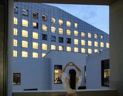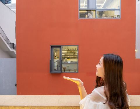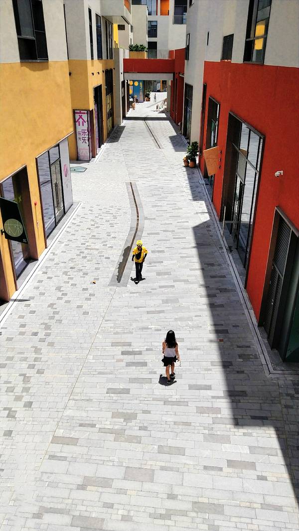 不过!作为职业摄影师,所有的问题都不是问题,一蕊和小强教大家如何在人山人海的商业体里拍出漂亮的ins风照片。首先需要注意观察寻找色块,第二层露台可以找到很多彩色房子的几何构图,这里主要运用了橙、红、黄、灰色四种颜色拼接而成,我们发现很多2-4种的色彩交汇的角落,通过简化构图就可以得到简单纯净的照片其次在人多的地方拍摄,切记要化繁为简,以人物为中心,利用减法原则,避免其他干扰元素入镜。