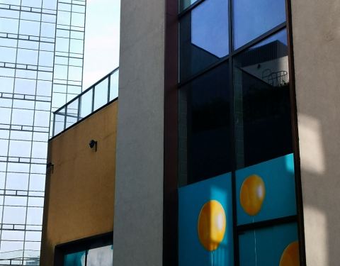 深业上城的露台真的很适合美美拍照,以红黄灰为色调,搭配浅色的衣服超级好看,露台的一楼有未来书店,拍累了在书店点杯饮料看看书也不错