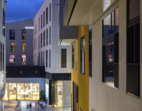 - ...以红黄灰为色调,搭配浅色的衣服超级好看,露台的一楼有未来书店,拍累了在书店点杯饮料看看书也不错
