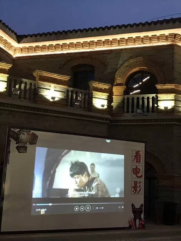 沿着老街一直往里走就能到了,相比于老街的古朴,这里应当说是更加现代化了,西式的小洋楼和朴实无华的居民住宅交相映衬,于是洋气的那个就更洋气了,朴实的那个也就更朴实了,但这二者结合起来却也并不突兀,反倒更有一番和谐的味道了。相对来说,这里夏日的夜晚,还算热闹,但是热闹却并并不吵闹,当地人总爱聚集于此,或散步,或聊天,惬意舒适。年纪大点的带着熊孩子,三五成群的聚在一起把话家长里短,稍微年轻一点呢,拍照的拍照,约会的约会,孩子们则嬉戏打闹,好不快活。 各人都有各人的事,各人也都有各人的小幸福。除此之外,我印象最深刻的还有这个充满了浓浓年代感的露天电影。在高淳,能拍照打卡的地方不多,但这里绝对算得上是一处,而且应当算是经典。于是有那么一天就带着小伙伴来打卡了。