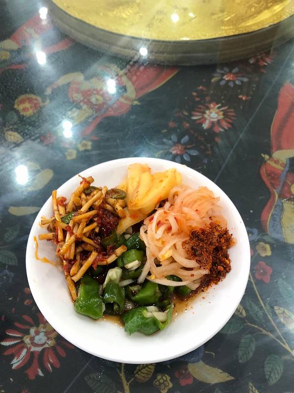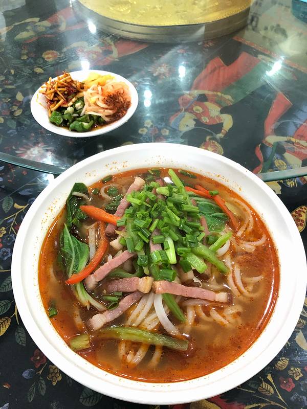 早上7点出发,9点10分到达恩施火车站。然后在旁边居民小区吃当地早餐。先来个烧饼尝尝味. 6RMB再来碗腊肉豆皮,这是开胃DIY的泡菜。辣椒很爽口