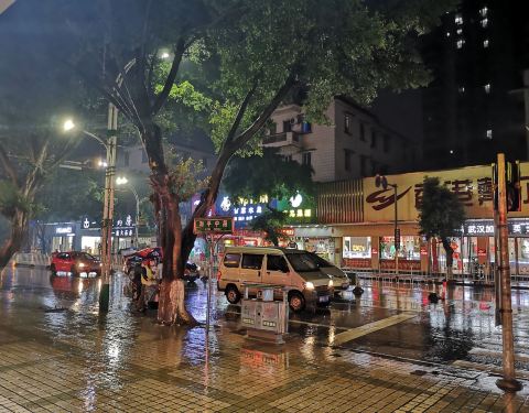 英德市区这边的核心地带就是明珠步行街了,这也是英德这边比较老牌的一条步行街,它的中心点个人觉得就是在英州明珠广场那里,过来的那天天下起瓢泼大雨,所以步行街的人不是特别多。