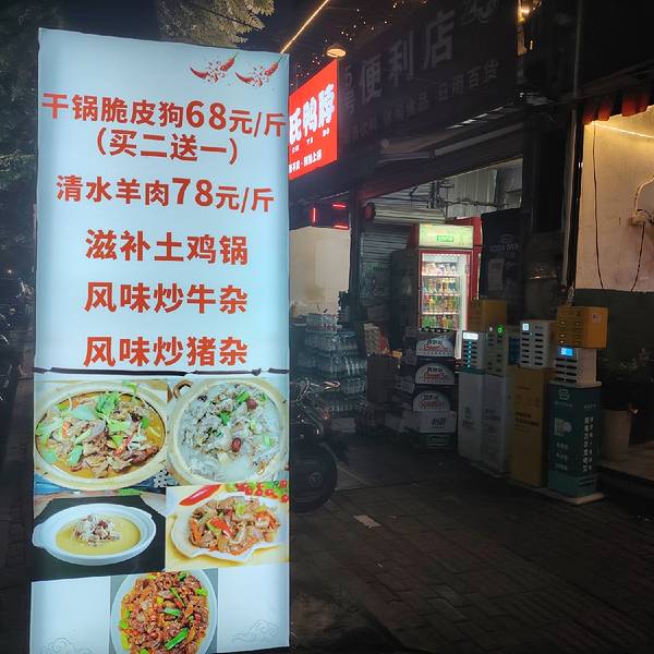 在南宁平西夜市过来的体育路逛,看到很多好吃的,但我还是选择回到路口的唤味私烤餐馆吃饭,这里的干锅脆皮狗和清水羊肉在搞活动,都有得赠品呢。