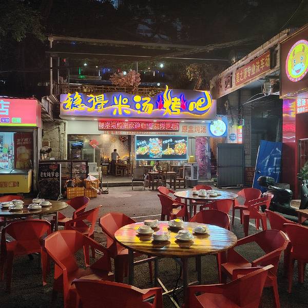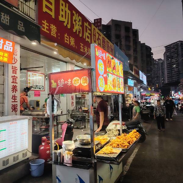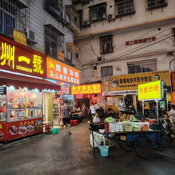从南宁体育路1号的唤味私烤餐馆走进体育路,可以通向著名的平西夜市,只是要走得远一点,不过好在路上都有很多好吃的东西。