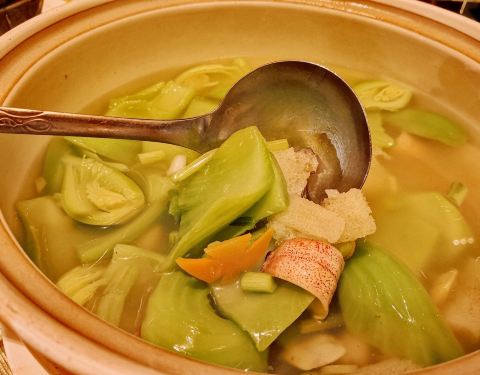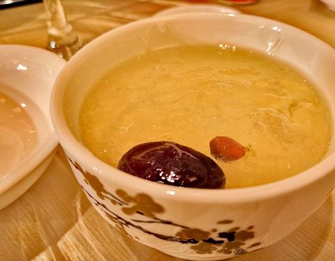 桌子中间有个小茶壶,上菜速度挺快的,是饭点人比较多,古香古色的装饰风格看上去很典雅。