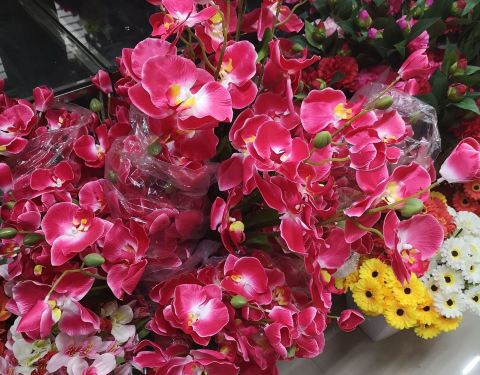 ...花,叶子花树的仿真度非常的高,还有插花艺术,热带花卉也是比较齐全,变叶木仿真度同样最高,很好看这个花艺区卖的假花品种很多,有吊兰花,叶子花,叶子花树的仿真度非常的高,还有插花艺术,热带花卉也是比较齐全,变叶木仿真度同样最高,很好看。