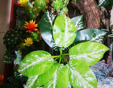 这个花艺区卖的假花品种很多,有吊兰花,叶子花,叶子花树的仿真度非常的高,还有插花艺术,热带花卉也是比较齐全,变叶木仿真度同样最高,很好看。