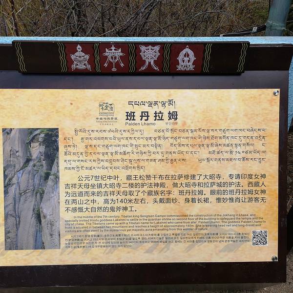 卡丁沟有一座落差200米左右的天佛瀑布,瀑布中有一尊天然形成的佛像卡丁沟有一座落差200米左右的天佛瀑布,瀑布中有一尊天然形成的佛像。当地人把这一天然佛像称作班丹拉姆女神。班丹拉姆亦称“吉祥天母”、“吉祥天女”、“荣耀女王”,她原为印度婆罗门教的主神,后被藏传佛教吸...卡丁沟有一座落差200米左右的天佛瀑布,瀑布中有一尊天然形成的佛像。当地人把这一天然佛像称作班丹拉姆女神。班丹拉姆亦称“吉祥天母”、“吉祥天女”、“荣耀女王”,她原为印度婆罗门教的主神,后被藏传佛教吸收为护法神和世界欲愿之主,她在苯教中也是一位受尊敬的主神。 展开