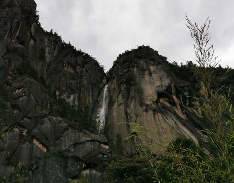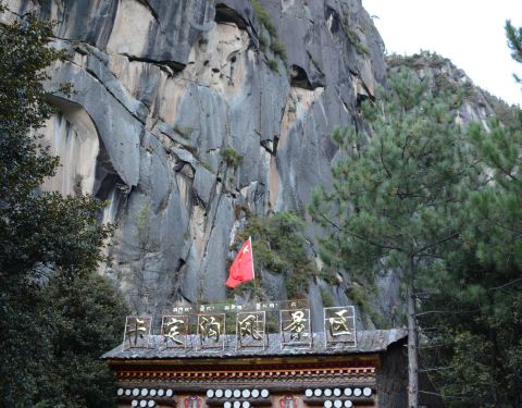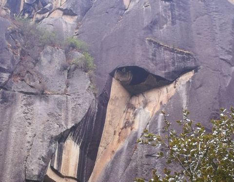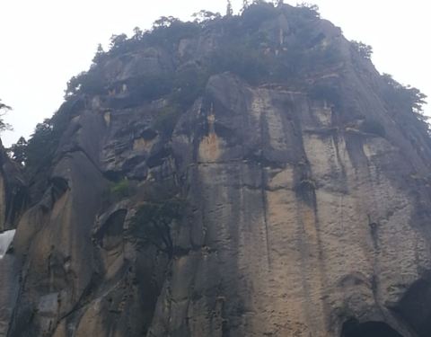 卡定沟天佛瀑布 这应该算是此行里最超值的景点了 印象中票价是20 垂直落差200米的瀑布后面 有一尊天然形成的大佛 水量小的时候侧脸明显 还有神女在侧 不禁要感叹大自然的神奇 走到瀑布正下方的时候 水量特别大 感觉像在下雨一样 我们去的时候还不是雨季 已经瞬间给我浇湿了 大家如果有外套和雨衣的话最好在走到瀑布底下的时候就穿好哈 雨季尤其要注意 不然真的会被浇透吹透