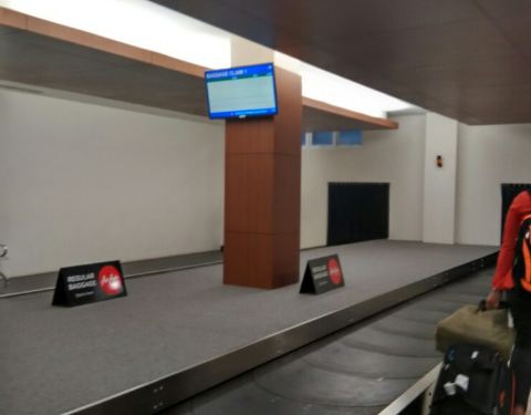 万隆的机场小,显得有点乱,但入境的柜台那里旅客都很有秩序地排队。行李输送带很短,当行李出来时有工作人员站在那里一个一个地把所有行李拿下来,放在旁边,等待旅客认领,要对行李票。