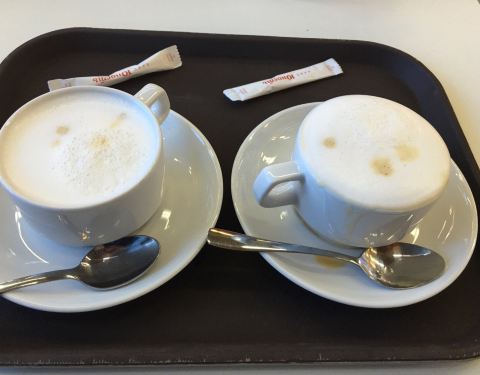 小城 小机场 漂亮温馨 我们提前几个小时到达后上Wi-Fi 时间很好打发 外面冰天雪地 而里面温暖脱外套 舒服。里面的咖啡好喝 第一张有可爱学中文的导游 最后一张自动售咖啡机