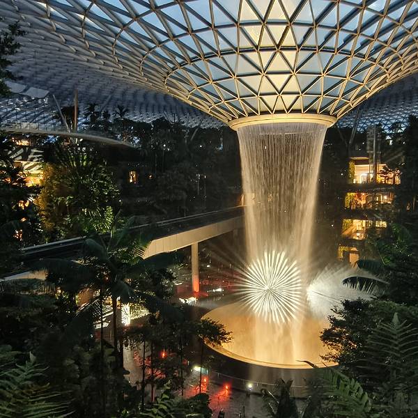星耀樟宜作为连接现有航站楼的桥梁,将商场和花园结合在一起,创造出了一个以社区为中心的新型建筑。星耀樟宣将自然与文化以及休闲设施交织在一起,生动地体现出了该机场的一个令人振奋和充满活力的城市中心理念,呼应了新加坡“花园之城”的美誉,樟宜机场不只是交通枢纽,它不仅重新定义了航空枢纽,也让等待成为一种享受。新加坡樟宜机场是全球顶尖的航空枢纽,连续多年获评“世界最佳机场”。它以卓越的设施与服务著称,不仅拥有多个航站楼,还打造了星耀樟宜这一标志性综合体,其中世界最高室内瀑布“雨漩涡”、天空之网、时空馆等景观与游乐设施,将机场变为旅游景点。同时,机场配备丰富的购物、餐饮选择,提供从平价品牌到高端奢侈品的多元消费体验,还设有休憩区、花园、电影院等,满足旅客多样化需求。此外,樟宜机场以高效运营与先进技术提升通行效率,凭借创新理念与人性化设计,成为现代机场的典范,是旅客出行的理想中转站。