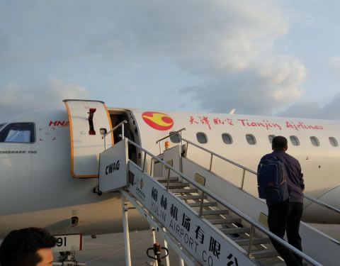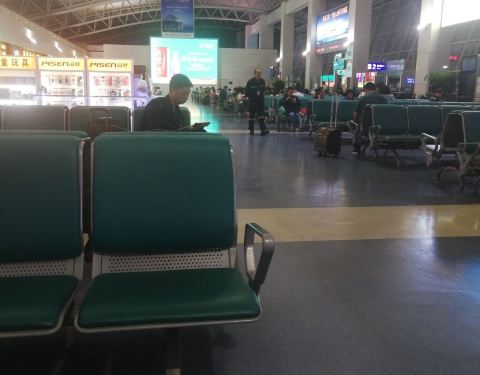 - 距离市区不远,榆林站附近有大巴去,机场不大,二层楼,不过二层的通道似乎没见使用过