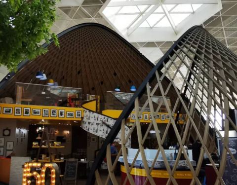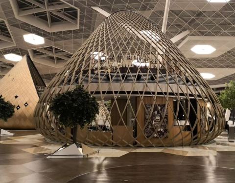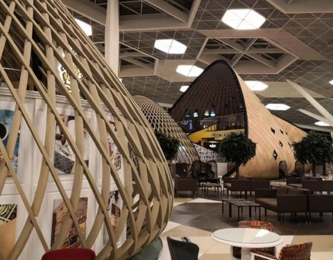 阿塞拜疆的机场,装修很漂亮,餐饮区采用的是竹编的“栗子”形状的建筑。每个“栗子”里面都是一个咖啡厅或是简餐厅。 休息区座椅充足,铺有浅棕色地毯,卫生保持的不错。 设有吸烟室,方便烟民。 免税的规模不大...阿塞拜疆的机场,装修很漂亮,餐饮区采用的是竹编的“栗子”形状的建筑。每个“栗子”里面都是一个咖啡厅或是简餐厅。 休息区座椅充足,铺有浅棕色地毯,卫生保持的不错。 设有吸烟室,方便烟民。 免税的规模不大,但是也算得上是五脏俱全。可以接受欧元付款,商品也都有欧元标价。 化妆品烟酒的牌子都大同小异,服装有一些当地品牌。手表牌子不少,奢品不算太多。手表主要牌子是万宝龙,其他品牌每个牌子会有几块,但样式很少。 太阳镜和施华洛世奇是有一些的,同样还是有样式比较少的问题。 服务员的英语水平一般,只可以做很简单的交流。 除了值机口的休息座椅,餐区还有不少小沙发,买点东西就可以坐很久,可以暂借休息休息。 机场内并没有可以打热水的地方,想喝水的话需要自己去买哦,如果需要热水,可以找餐区的咖啡厅要一些免费的开水,我是为了喝点热水几乎要遍了各个咖啡厅,服务生们都很好,没有一个人拒绝我哦,满意度大涨。