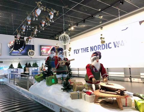 机场真小,一切可以尽纳眼底,离市区和圣诞老人村都比较近,传输带特别些,居然有驯鹿和圣诞老人像。
