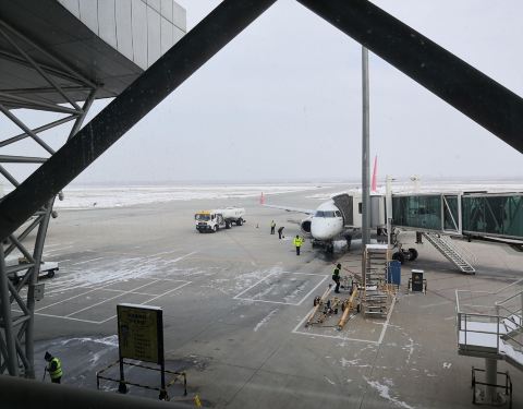 ...,这次是我到达当地,这机场航班很少,小城市一般是中转才能到当地,当地少有雪的,有雪可能影响航班