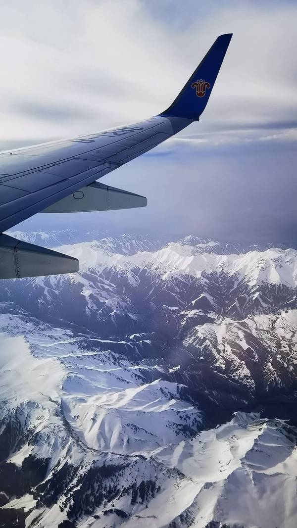 这次我们选择了异地还车,乌鲁木齐取车,伊宁还车,虽然多付2000多元的异地还车费,但是节省了时间成本,人也轻松许多。今天,从伊宁飞乌鲁木齐,再从乌鲁木齐飞武汉天河机场,结束愉快的旅程,回家!飞机下的雪山