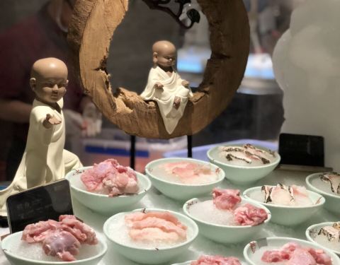 「宴誉.恋海」纵是深夜才要出来放毒一番,458/位的海鲜姿造自助餐应该算是南京较高级的了。在这里原来吃过的、没吃过的都能够一饱口福:且不说每人固定的刺身拼盘了,就是自取的刺身中也有帝王蟹和大波龙、鳄鱼肉这样的好品种,关键统统不限量!开胃的佛跳墙、暖胃的燕窝盅也是珍材满满,十分良心。店家除了满足各类爱吃生制海鲜人的喜好之外,也考虑到了不喜凉的顾客,配以小火锅涮海鲜及各类新鲜蔬果,也是贴心。饱腹后再来点哈根达斯和甜点收官,十分满意。