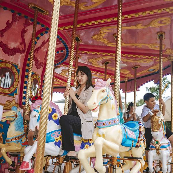 ...,有旋转木马,玻璃栈道,还有就是小孩子玩的游乐设施,还有就是比较刺激的大摆锤,其他的就没什么了这个深坑乐园,我觉得更适合带孩子来玩,很适合溜娃,而且里面的项目都偏向安全,有旋转木马,玻璃栈道,还有就是小孩子玩的游乐设施,还有就是比较刺激的大摆锤,其他的就没什么了。