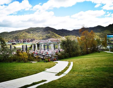 奥伦达部落海坨山谷特色小镇,占地60000亩,位于北京延庆与河北张家口赤城...海坨山由于准备冬奥会已经封山