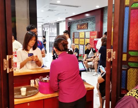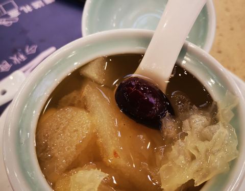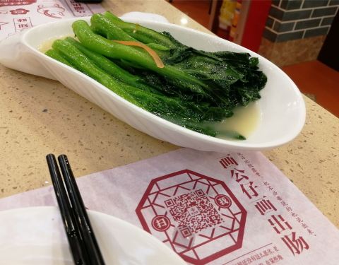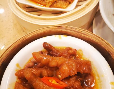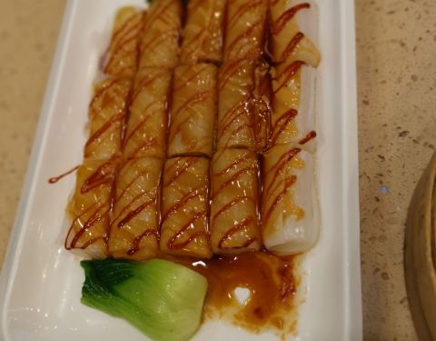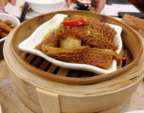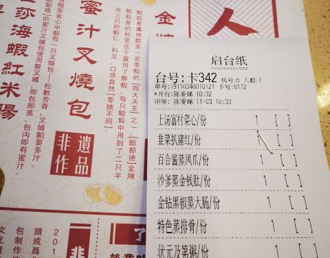 用手机提前取了号再过来,没想到这里也一样多人,但叫号速度还算挺快的。这家很大,位置很多,坐下后要求不能超过2小时。 雪菜肉松陈村粉:正宗的陈村粉,很好吃,份量也大 豉油皇三丝炒面:跟陈村粉比起来就逊色很多。没想到陈村粉份量那么大,不然就不点炒面了 蜜汁叉烧包:点都德的非遗作品,松软、内有饱满的蜜汁 豉油皇凤爪:好吃,每只凤爪大小相当 韭菜猪红:味道也很好,猪红很滑,汤也很好喝 绿茶果皇薄撑:之前吃过薄撑觉得挺好吃,这里的薄撑是绿茶味,里面夹着木瓜和些花生等,还不错