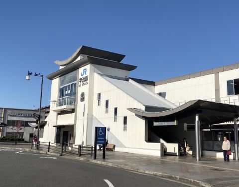 宇治一共是有两个火车站,一个是位于宇治桥左岸的JR宇治站,另一个是位于宇字桥右岸的京版宇治站。我们是住在京都站附近,从京都站出发的话当然是搭JR更方便一些,车程不过是20分钟,很快。宇治并不大,从宇治站出来就会有指示牌指引前往平等院的方向,绝对不会迷路。