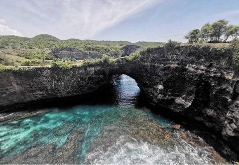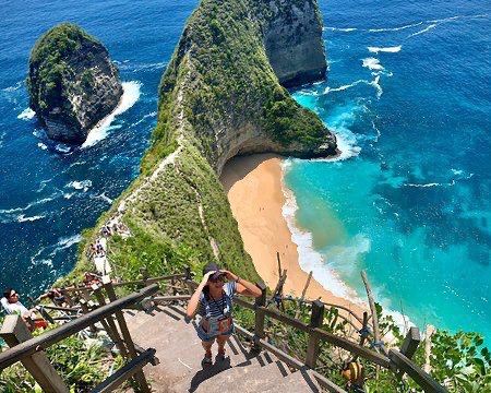 佩妮达岛上的一个非常美的地方,景色非常迷人,从山顶到沙滩需要有一个好的体魄和合适的着装,路很陡但是值得下去一看,下山路上山路非常具有挑战。记得要穿运动鞋。