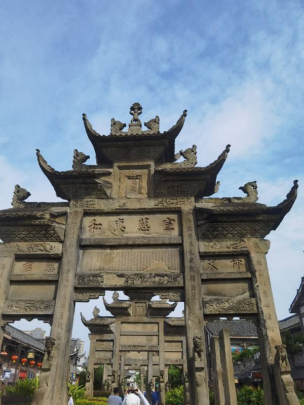 在这里,一方方青石映入游客眼中,让他们的眼窗终于从手机屏幕上解脱出来,弥足珍贵的隆昌青石他们一般都稳扎在地里不易抛头露面,但是历史的召唤他们慨然出手,盘踞一方,成为古镇的底蕴,隆昌珍贵的地下资源就此成为上佳的“石中一绝”,个性是鲜明,个性也融入了共性,隆昌石牌坊沉淀着厚重的华夏文明精髓,是集哲学、历史、数学、力学、建筑学、文化艺术精粹为一体的明清建筑精品的代表作,具有很高、很珍贵的历史、艺术、文物科学价值。来这里也能暂时平息一下忙碌的心灵,去回归自然、瞻望历史、暂忘世俗吧!。