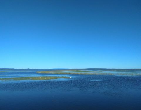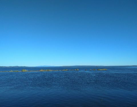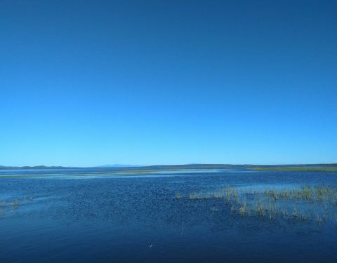 之前还以为挠力河就是饶河的分支,但是坐着客车走了好久才到达这里。还没有下车,就被他的这一抹蓝所深深的吸引了。或许是因为天空太美,或者是因为天气太好。灿烂的阳光洒向河面,将河面显得格外的蔚蓝,不得不佩服东北,特别是黑龙江的空气质量良好。