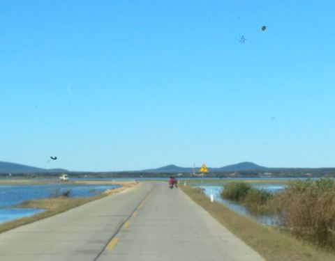 ...的天是蓝色的,也把河面映衬的格外的蓝,仿佛到了国外一样,最美的是配上湿地公园,仿佛一个画在年前
