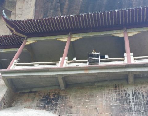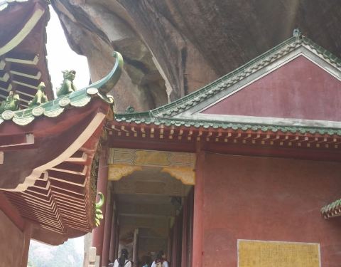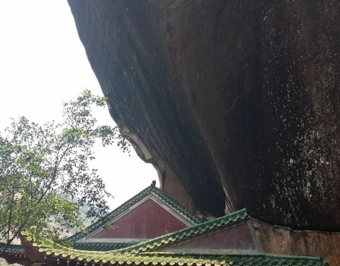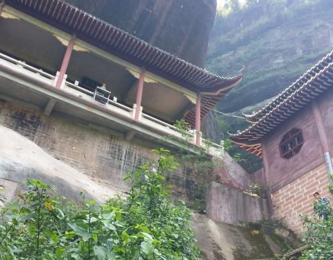 道观依绝壁悬崖岩石而建,巨岩道观,别具特色,犹如仙境