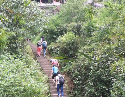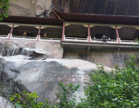 尤其洞前一片芭蕉林,相传为古代道士所植,蕉林正置崖下,崖顶四季飞雨飘洒,自成天然奇景,雨打芭蕉...