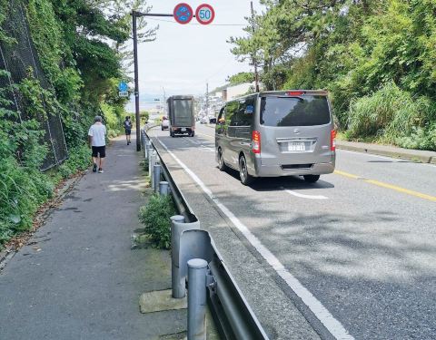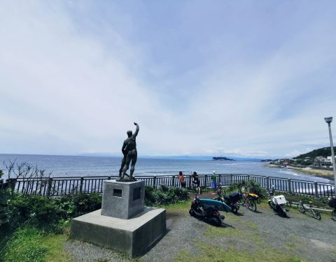 镰仓的海从这里可以看到富士山了,可惜那天云挡住了。 沿着134号国道一直往前走就是稲村ヶ崎、也就是个可以看富士山海边的小山丘。
