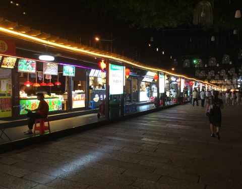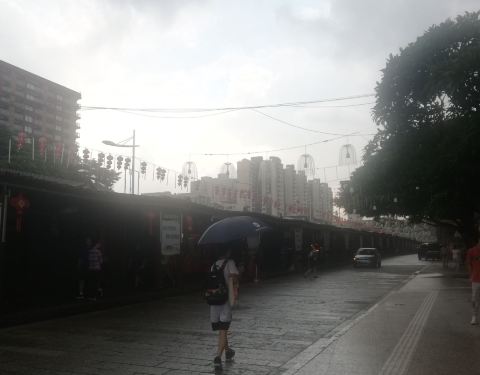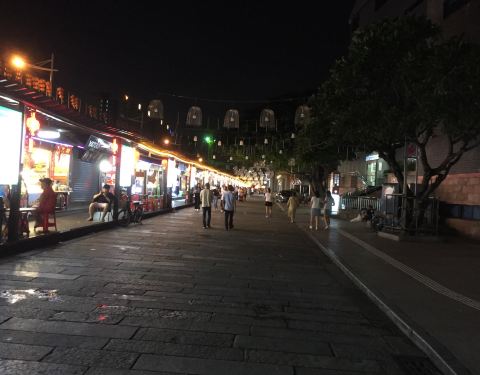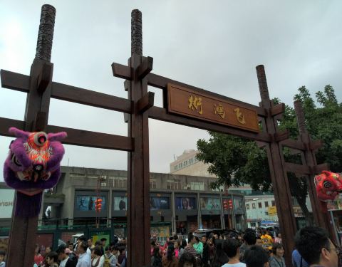 走路去百花广场时路过这条街,旁边是图书馆,前面写着手信街,后面写着飞鸿街,街道不长,主要是以小吃为主,人流量也不是很多。