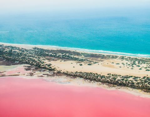 一位高个的女司机,自己推着飞机,自己开飞机,带我们飞了一圈粉湖,很棒的体验。