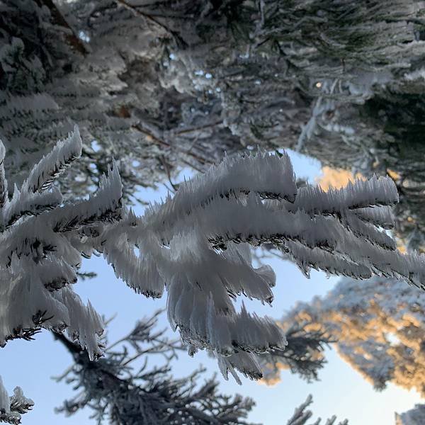 早晨醒后,树枝上的冰,变成了这种状态,像经历过一夜的抗战,胜利者昂首挺胸的骄傲!