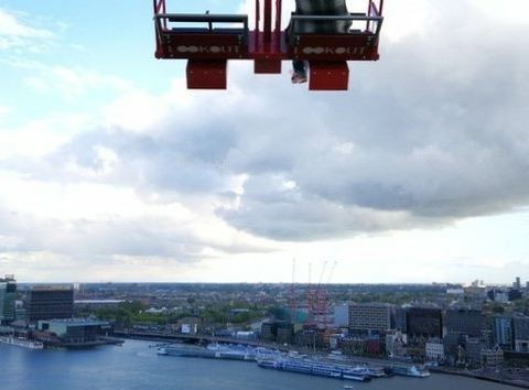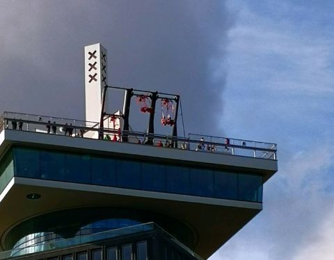 这个观景平台就在一栋大楼上面,观景平台上面不仅有望远镜,还有一个类似秋千的设施,坐在上面可以荡出大楼之外,这里可以全面的观看阿姆斯特丹的美景。
