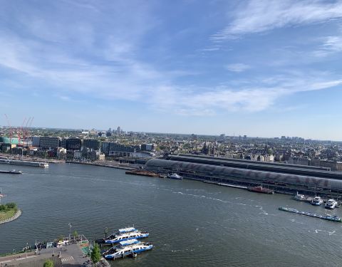 没想到这里的游客还挺多的,去的时候外面还排起了长队,在这个大厦的顶端是整个城市最好的观景平台了,可以看到整个阿姆斯特丹的美景,挺不错。