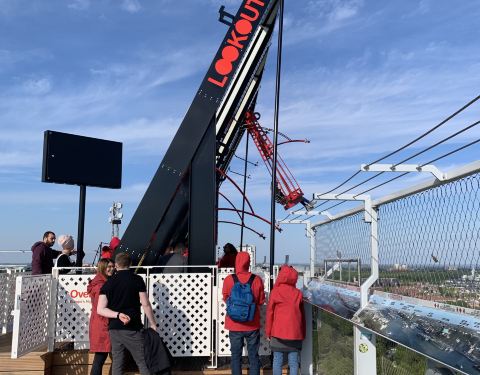 来到阿姆斯特丹一定不能错过超级好玩的空中秋千,从对岸的中央火车站坐了免费摆渡船开到adam瞭望台,买好票就可以直接上去了。我们选择的是带秋千的联票,人还是挺多的,需要排一会队,不玩秋千可以随意拍照,俯瞰整个阿姆斯特丹。