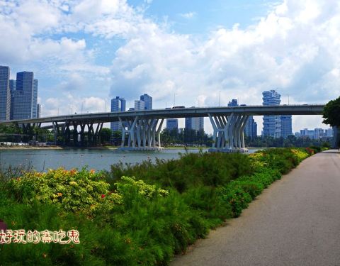 那天在用餐付款时,无意间换找了一张上个世纪(1985年至1999年之间)新加坡货币局发行船系列的50元纸币,看到纸币后面是著名的薛尔思桥,由于我们曾经多次从东海岸骑行经过这里到滨海堤坝和前往滨海花园,除了心里对这张50新元纸币莫名萌起了一种说不出的亲切,也意识到这座桥在新加坡的‘地位’,毕竟一直以来,50新元的纸币是狮城市面上流通最广最好使用的货币,老公告诉我这座长达1.8公里,高约海拔29米的高架高速公路桥就是以新加坡的第二任总统本杰明·亨利·薛尔思医生的名字命名,而这座桥自1982年建成通车后至今,这30多年以来,从未停止发挥她为新加坡带来的贡献,是新加坡最高也是最重要的桥梁之一。 薛尔思桥除了大大缩短新加坡东部,东北部,樟宜机场等等一带的交通往来西部或市区等地方所需耗费的宝贵时间(虽然现在也有一条海底隧道从东海岸高速公路通往狮城的商业市区),也间接为减少车辆排放废气而导致空气的污染做出了贡献,同时薛尔思桥更是许多到新加坡的旅客从机场前往市区酒店的必经之路,‘高高在上’高架桥两旁的风景真心让使用者从上桥到下桥都饱足眼福。 除了是做为新加坡交通系统一条重要的‘血管’,薛尔思桥的桥底‘风光’也是‘无限美好’,铺上整齐平稳的砖块和种下许多热带植物和一些长凳打造成一个让往来游人或脚踏车骑行者有个遮阳挡雨或小休片刻的场地,这里也是连结加冷河畔和滨海湾东花园,滨海堤坝的枢纽。 在新加坡的游友在畅游新加坡的同时千万不要忽略了默默在一旁服务大众的薛尔思桥,无论从滨海湾金沙,新加坡摩天观景轮,滨海湾花园东或加冷河畔都能近距离多角度欣赏,探索这座漂亮的薛尔思桥。