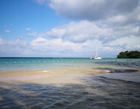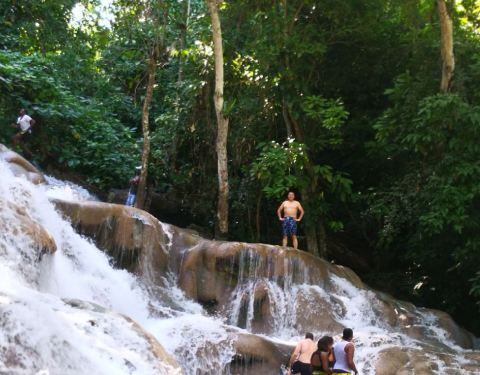 DUNNS 河瀑布算是牙买加比较好的一个景点,湍急的河水从山上沿着层层叠叠的石头奔腾而下,一直流入大海。游人则可以在河中的某一段逆流而上,非常的有趣。不过攀爬之前一定要记得买一双10美元抓地力强的橡胶鞋穿上。