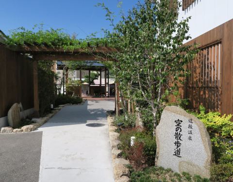 道后温泉本馆馆后面的小鸟居台阶上去就是空中散步道,散步道可以说就是一个道后温泉本馆的最佳展望台,是俯拍道后温泉本馆全景的最佳地点,尤其是晚上亮灯的时候非常的漂亮。在展望台这里还有一个户外足汤,当然夏天的时候,本来就热,再泡一下足汤更加的热烘烘。展望台上面还有一个汤神社,有时间的话可以去看一下。