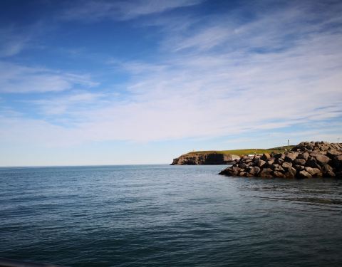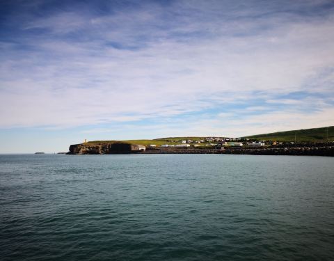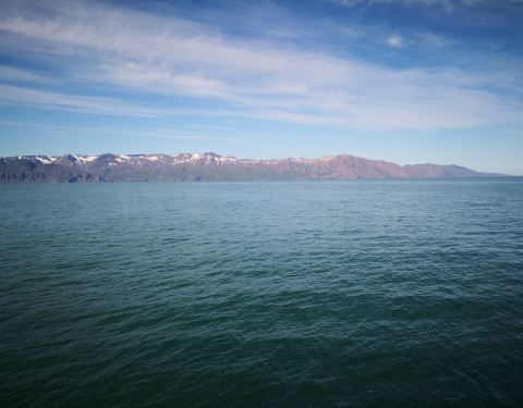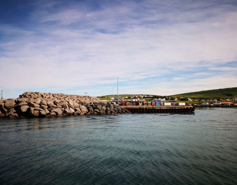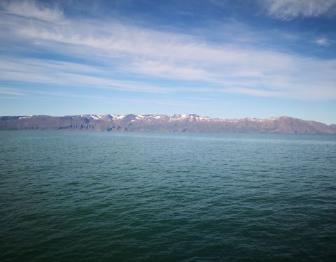 胡萨维克号称“欧洲观鲸之都”,冲着这个名声预定了船票,特意从阿克雷里过去。尽管阳光明媚,港口风不大,但穿着规定的厚厚的服装在整个过程中还是很冷。与波士顿的观鲸相比,这里的价格高,但船小了很多,也没有内仓,有两个伙伴晕船了。整个过程中,只看到一条鲸鱼出没了几次,鲸鱼也不大。与在波士顿看到一家两大一小鲸鱼相比,这里观鲸没有找到理想感觉。