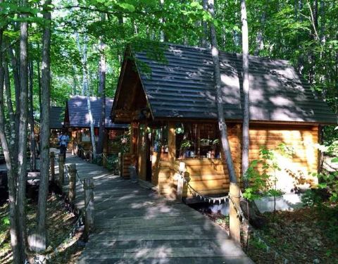 童话世界般的感觉,每个小木屋里面都是当地的一些手工制作工艺品,有些是木雕。幽幽丛林,炫彩光影。感觉像丛林深处的一个魔幻世界。值得一来!