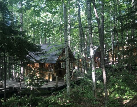 在新富良野王子饭店旁边的森林里,一共有15栋的小木屋。森林精灵阳台的名称是来自于仓本聪的作品,传说在北海道的森林当中有着智慧的小精灵。15栋的小木屋里面,每一间都有不同的主题。有纸之家、锻冶屋、风之家...
