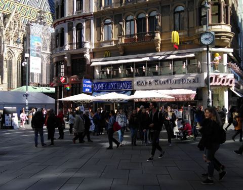 克恩顿大街位于维也纳的市中心核心位置,两边遍布各种商铺和小店,也是游客集中的区域