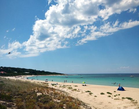 非常非常美的沙滩 水是绿色的 沙子闪闪发光 当地人在bbq 还有很多大狗和小朋友
