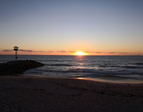 珀斯的城市海滩非常漂亮,一看到蓝蓝的大海和白细的沙子就想马上跳进海里游泳的感觉,这里看日落也是非常的壮观,到了傍晚,这里的风就会很大!